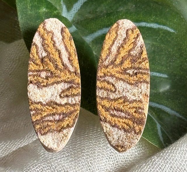 Aboutにて注意事項共に発送について記載して おりますので必ずご購入前に確認お願い致します。 ボディはライムストーンで鉄やマンガンなどにより シダや樹木を描く独特な風合いをもつ ジャーマンデンドライトです。一般の研磨された 色合いや輝きを楽しむ石とは異なり自然の力より 創作された絵画の様な模様を存分に楽しめる 芸術的な石です。 アイテムコード 2023-1573 個数 2個 石名 ジャーマンデンドライト 産地 ドイツ サイズ 縦2.7cm 横1.1cm 厚さ5mm 縦2.75cm 横1.1cm 厚さ4.4mm ※最長部分です。 グラム 計5g ※サイズ、グラム、カラットは若干の誤差が あることがございます。 ※ペアでの出品ですがサイズ形状は異なることが ございます。異なるものを別々に用途下さい。 状態 良好 天然石の性質上の傷、クラック小さな穴や 欠けがある場合がございます。 厚さがやや不均等のものもあることが ございます。 商品写真ではそれらの全てを掲載しきれない 場合もございます。その旨ご了承ください。 撮影 窓際自然光 (出品中の石について) 写真が現物です。パソコンやモニター機種等により 色あいは現物と異なることがございます。 又、天然石は光の強さ、光の種類や背景等により それぞれ色あいは異なります。 裏側側面には天然由来や石の性質上の欠けや凹凸が あることがございます。光の状態や見る環境により クラックは写真以上に目立つことがあったり写真では 確認できないクラックや傷はあることがございます。 色違いやイメージや写真とは異なる等お客様ご事情に による返品又は交換は固くお断りいたします。 記載事項をご理解頂けない方や価格以上の品質を 求める良識ない行為をされた方は当店でのご購入は お断りしております。 その他注意事項もAbout覧にて記載しておりますので そちらご確認下さい。