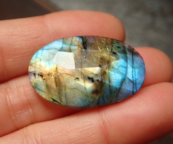 ファセットカットが施されたラブラドライトです。