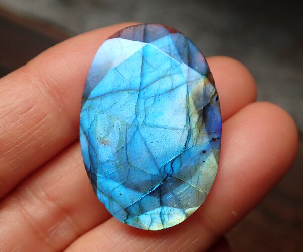 ファセットカットが施されたラブラドライトです。